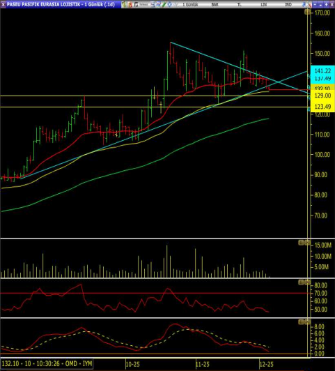 Fiyatın kapanışları kısa vadeli hareketli ortalamalara yakın olması kısa vadede yukarı yönlü momentumun zayıfladığını gösteriyor.