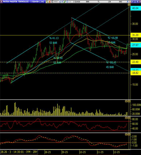 Son fiyatlamada 26–28 bandında yatay bir denge arayışı var; fiyat hala kısoha ve orta vadeli hareketli ortalamaların altında, uzun vadeli ortalamaya yakın seyrediyor, bu da trend dönüşünün henüz teyit edilmediğini gösteriyor.