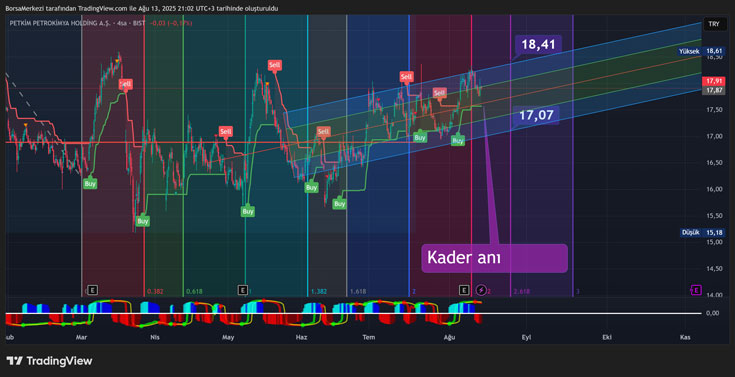 PETKM (Petkim) hissesi teknik olarak günlükte “Al”, hareketli ortalamalarda ise “Güçlü Al” sinyali veriyor ve 17 TL ile 18.40 TL seviyesi arasına sıkıştı. RSI 57,7 seviyesinde ve aşırı alım bölgesine yakın değil. Stokastik %K 74,6 ile orta-üst bölgede.