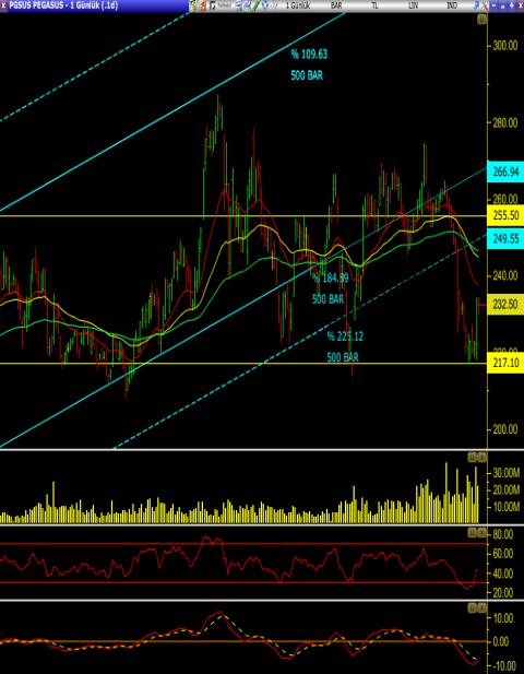 • Hisse uzun vadeli yükselen kanal içinde hareket etmesi ardından 263.50 seviyesinden gelen güçlü satış baskısı ile yükselen kanalını kırıyor.