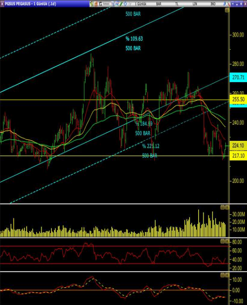 • Hisse uzun vadeli yükselen kanal içinde hareket ediyor. Ancak; son dönemlerde bu kanal kırılmış ve önemli bir destek seviyesi olan 217.10 seviyesine çekilmiş.