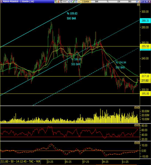 211–217 bandındaki hissenin fiyatı, kısa vadeli ortalamalarının üzerine çıkmaya çalışıyor; bu bölge kısa vadeli yön açısından kritik.