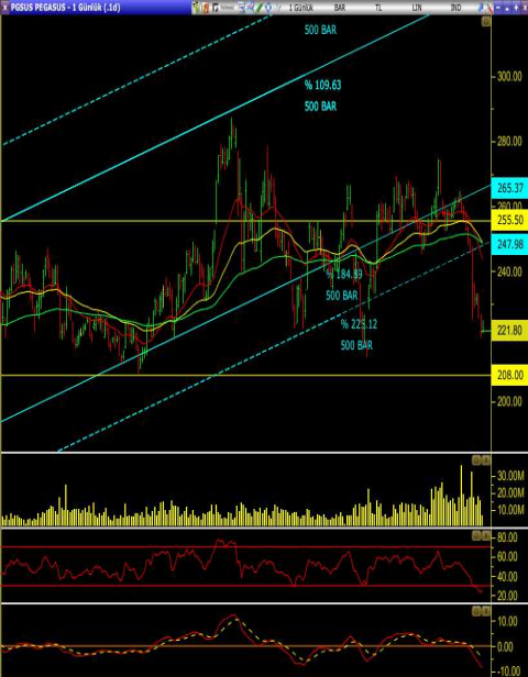• Hisse uzun vadeli yükselen kanal içinde hareket etmesi ardından 263.50 seviyesinden gelen güçlü satış baskısı ile yükselen kanalını kırıyor.