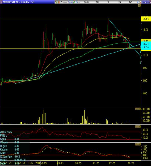 Özetle hisse, ana yükselen trend üzerinde tutunmaya çalışan ama net yönünü henüz seçmemiş görünümde. 12,50 seviyesi aşılmadan güçlü yükselişten bahsetmek zor.