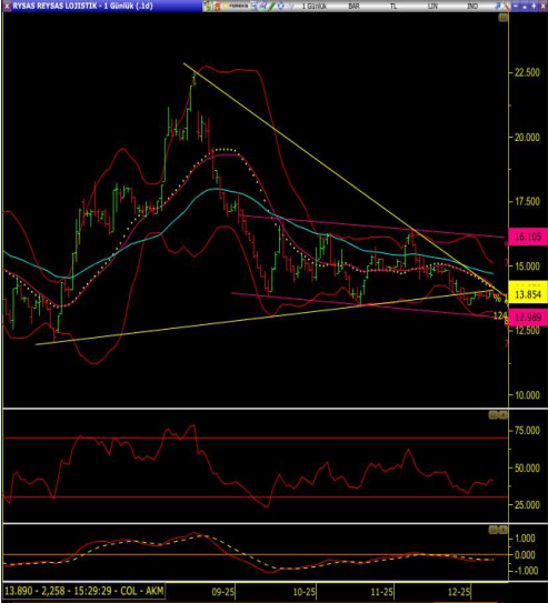 Bu seviyenin altında bollinger alt banda karşılık gelen 13.23 seviyesine doğru güç kaybı yaşanabilir.