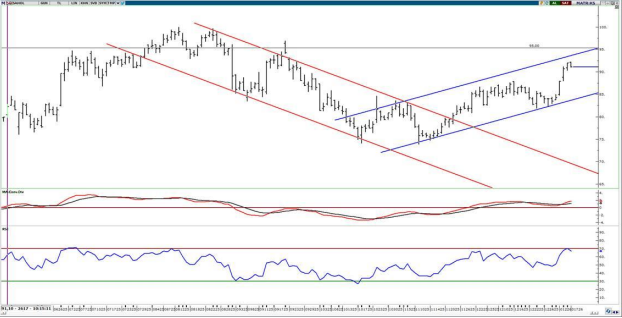Son üç işlem gününde yükseliş ivmesini artıran hisse son dört ayın en yüksek seviyesine ulaştı. Hissenin 50 haftalık direncinin karşılık geldiği 85,00 seviyesini geçmesi ile orta vadeli yön pozitife döndü. 5 günlük ağırlıklı ortalaması 90,00 üzerinde kalınması halinde yükseliş ivmesi 95,50-98,00 bölgesi hedefli devam edebilir. Özetle tepki hareketin devamı için 90,00 üzerinde kalınması gerekiyor. Mevcut seviyelerden yapılacak alımlarda kısa vadeli satış için 95,50-98,00 direnç bölgesi takip edilebilir. Stop-loss olarak ise 88,00 izlenebilir.
