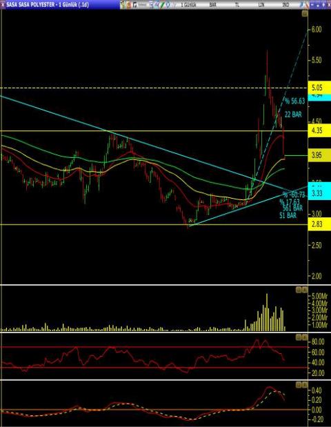 • Uzun vadeli düşen trend ile yükselen trend arasında bir destek alarak 5.66 seviyesine kadar yükselen hisse, bu seviyeden gelen kar satışları ile önemli seviyelerini test ediyor.