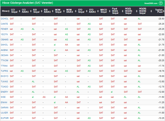 BIST 100’de “SAT” sinyali hisse senetleri: