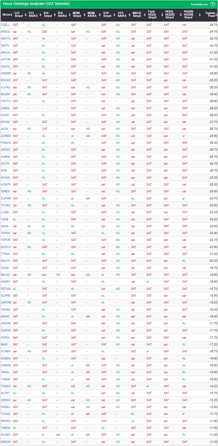 BIST 100’de “SAT” sinyali hisse senetleri:
