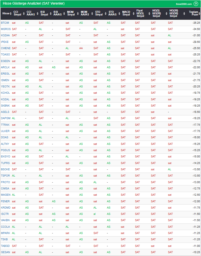 BIST 100’de “SAT” sinyali hisse senetleri: