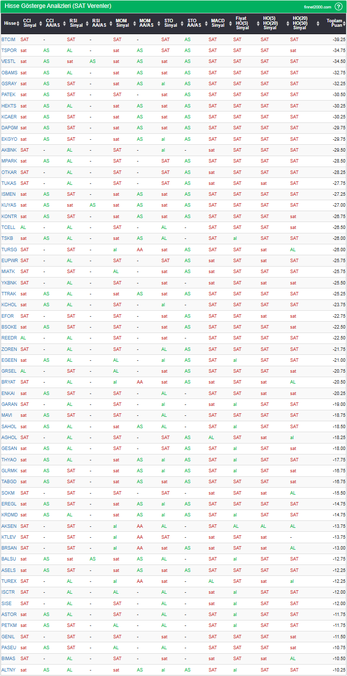 BIST 100’de “SAT” sinyali hisse senetleri: