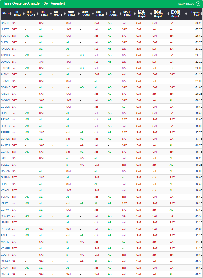 BIST 100’de “SAT” sinyali hisse senetleri: