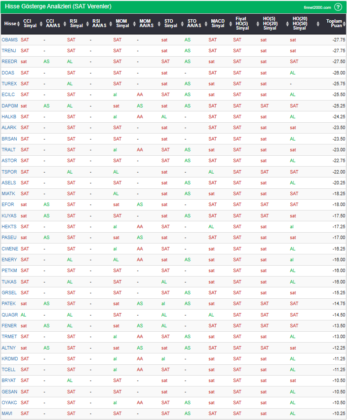 BIST 100’de “SAT” sinyali hisse senetleri: