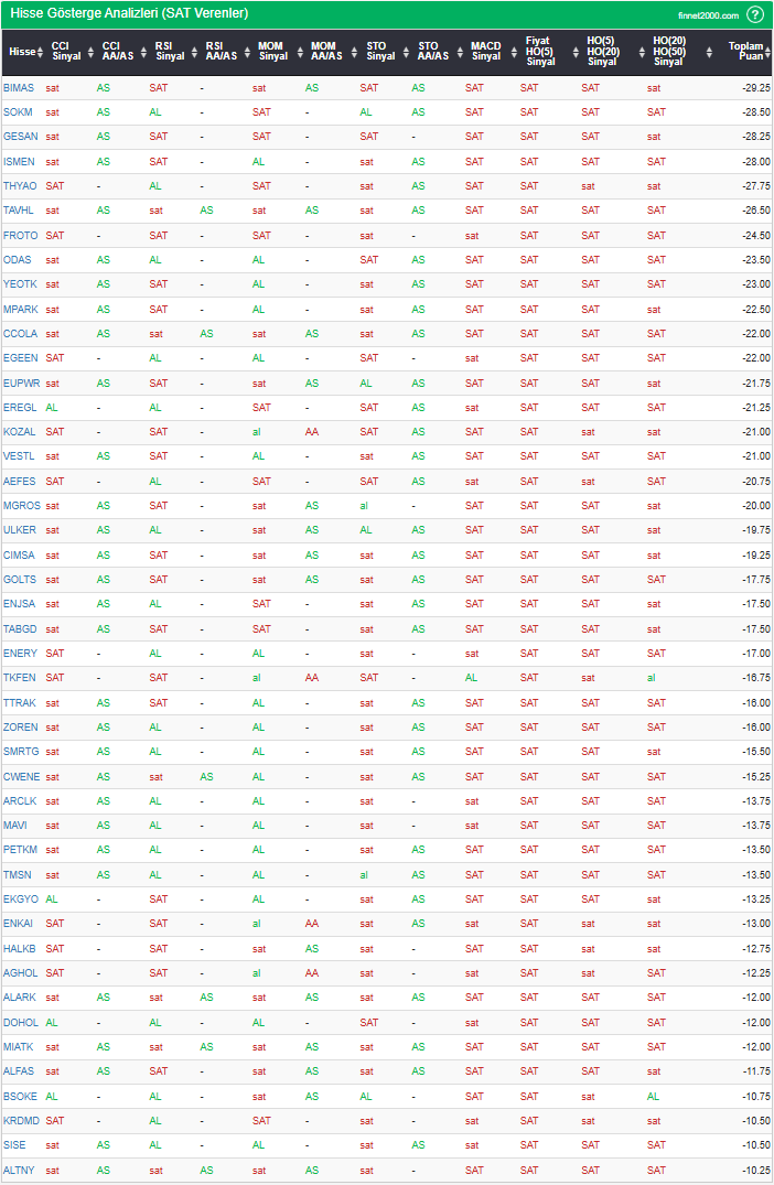 BIST 100’de “SAT” sinyali hisse senetleri: