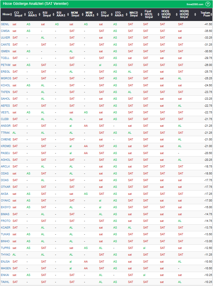 BIST 100’de “SAT” sinyali hisse senetleri: