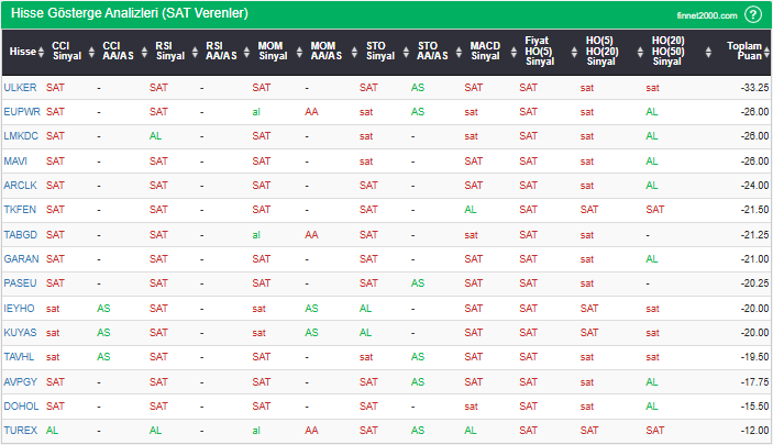BIST 100’de “SAT” sinyali hisse senetleri: