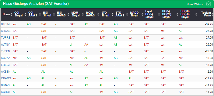 BIST 100’de “SAT” sinyali hisse senetleri: