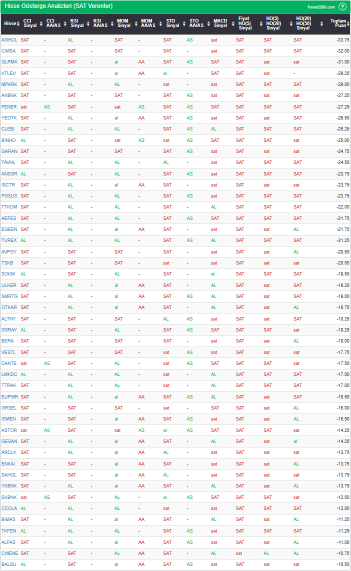 SAT Sinyali Veren Hisseler – (25.09.2025 Kapanış Fiyatları İle)