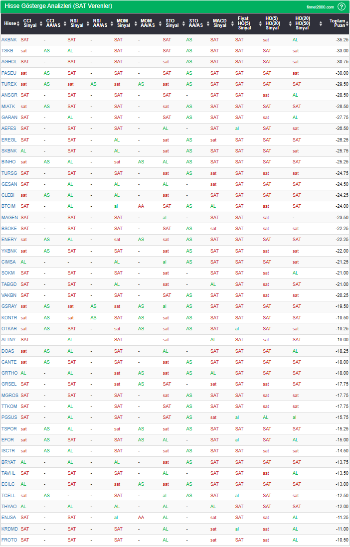 BIST 100’de “SAT” sinyali hisse senetleri: