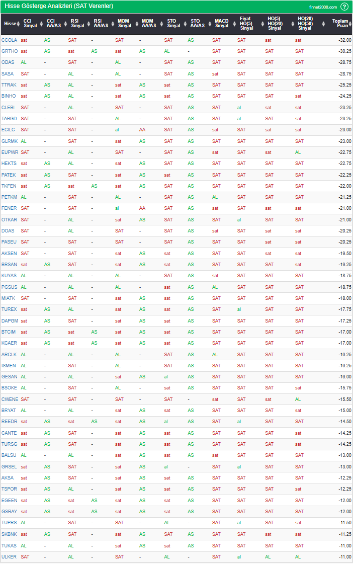 BIST 100’de “SAT” sinyali hisse senetleri: