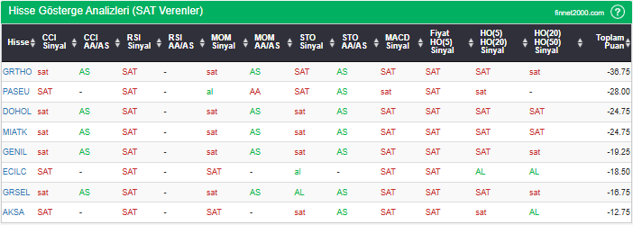 BIST 100’de “SAT” sinyali hisse senetleri: