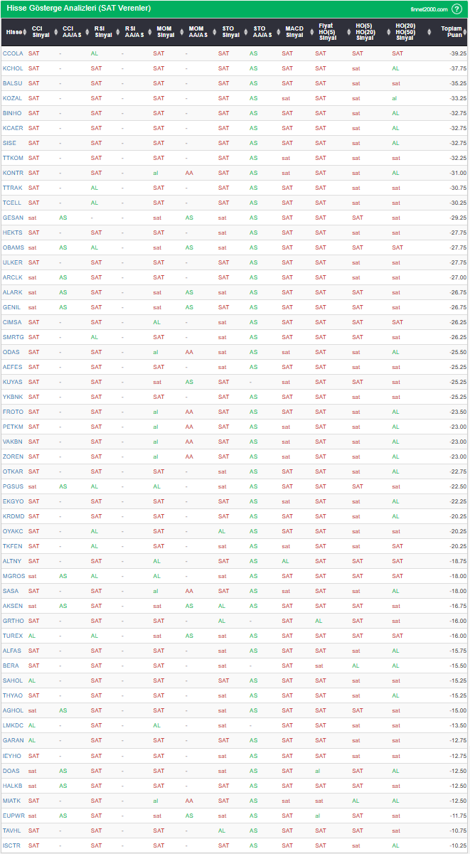 BIST 100’de “SAT” sinyali hisse senetleri: