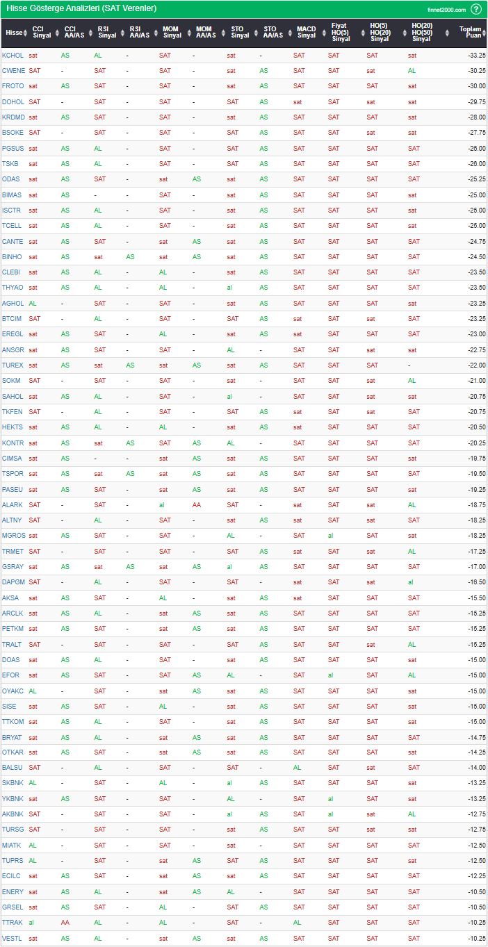 BIST 100’de “SAT” sinyali hisse senetleri: