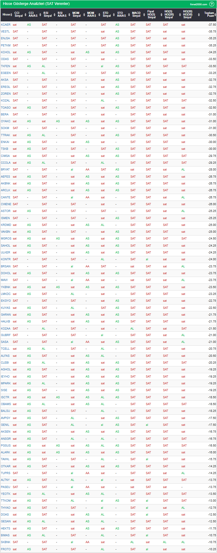 BIST 100’de “SAT” sinyali hisse senetleri: