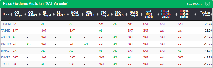 BIST 100’de “SAT” sinyali hisse senetleri: