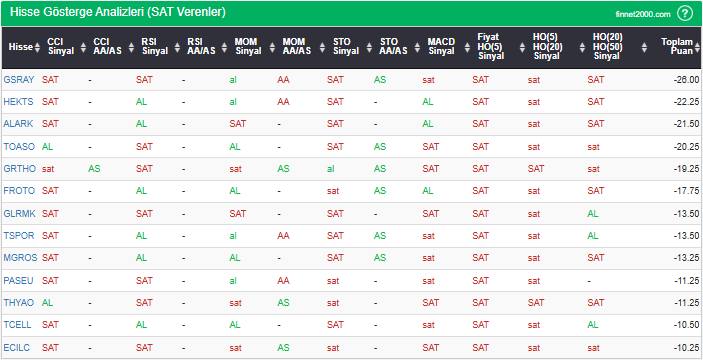 BIST 100’de “SAT” sinyali hisse senetleri: