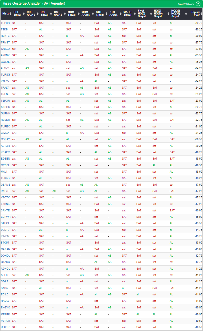 BIST 100’de “SAT” sinyali hisse senetleri: