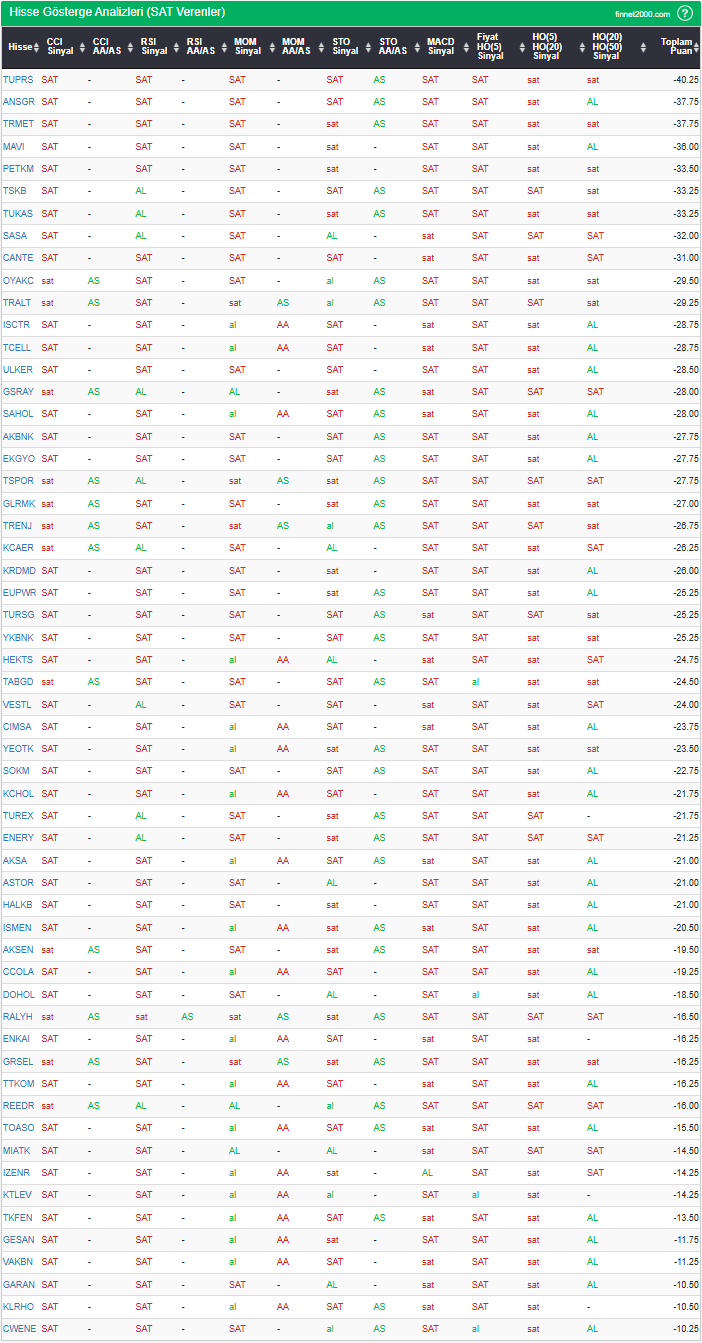 BIST 100’de “SAT” sinyali hisse senetleri: