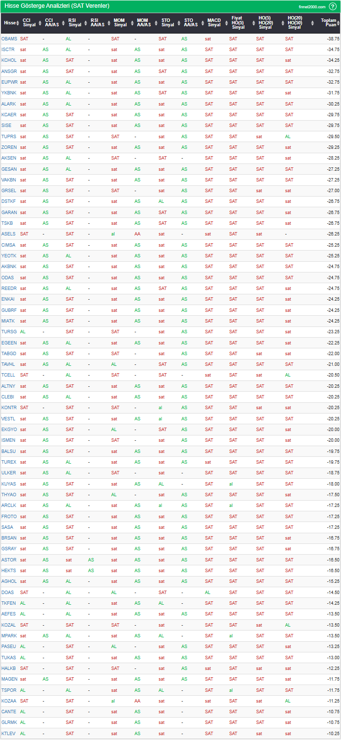 SAT Sinyali Veren Hisseler – (6.10.2025 Kapanış Fiyatları İle)