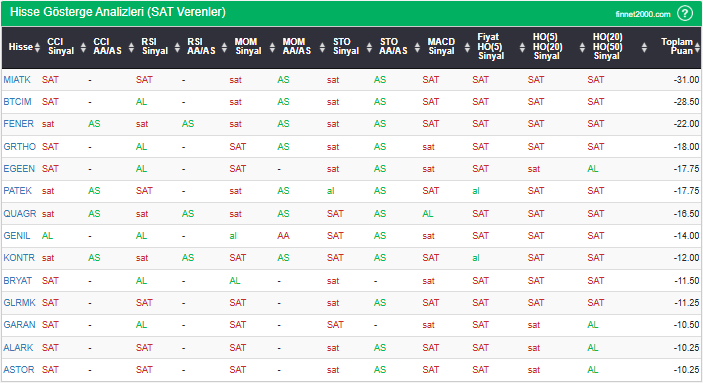 BIST 100’de “SAT” sinyali hisse senetleri:
