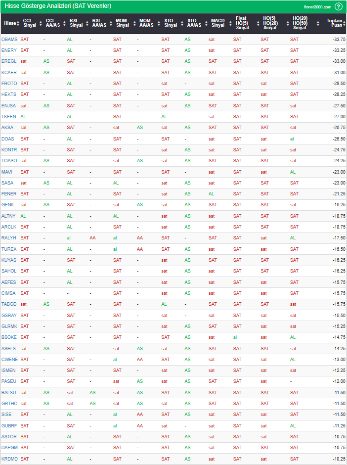 SAT Sinyali Veren Hisseler – (7.11.2025 Kapanış Fiyatları İle)