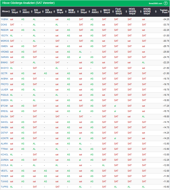 BIST 100’de “SAT” sinyali hisse senetleri: