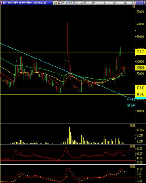 • Olası tepki hareketlerinde ise 216.10 seviyesi ilk direnç olmak üzere sırasıyla 225.50 ve 235.10 seviyeleri takip edilebilir. 235.1 direnci kritik bir konumda iken aşılması halinde yukarı yönlü hareketin devamı beklenebilir.