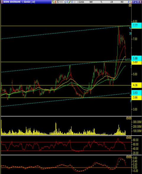 • Önemli ortalamaların altında fiyatlanan hissenin teknik göstergelerine bakıldığında kısa vadeli göstergelerde rsı yönünü yukarı çevirmiş, stokastik’in aşırı satım bölgesi içinde olduğunu görüyoruz.