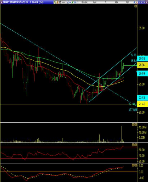 • Hisse düşen trendini aşmasının ardından kısa vadeli bir yükselen kanal oluşturuyor.