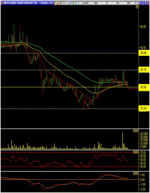 • Ancak hisse 30.60 üzerinde konumunu korur ve hacme bağlı tepki alır ise 31.20 seviyesi ilk direnç olmak üzere sırasıyla 32.76 ve 34.76 direnci yeniden hedeflenebilir.