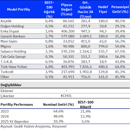 Model portföyden Koç Holding’i çıkartıyoruz.