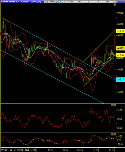 • 439.75 seviyesinde tutunamadığı takdirde bollinger orta banda doğru satış baskısı daha da artabilir.