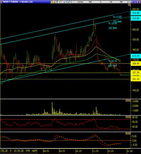 Özellikle son günlerdeki sert düşüşle fiyat 151.10 seviyesinde tutunmaya çalışıyor; bu seviye tepki hareketinin geldiği önemli seviye olduğundan kritik bir bölge niteliğinde.