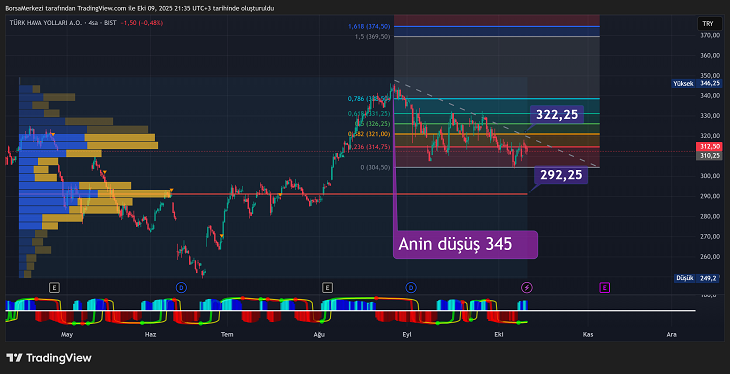 Fibonacci pivot noktaları 320,92 TL’yi kritik destek/direnç seviyesi olarak gösteriyor. İchimoku base line 319 TL seviyesinde yer alıyor. Bu verilere göre, ilk destek 319 TL ve ikinci destek 305 TL civarında konumlanırken, ilk direnç 321 TL ve ikinci direnç 330 TL seviyelerinde izlenebilir. Mevcut fiyat bu önemli seviyelerin arasında sıkışmış durumda.