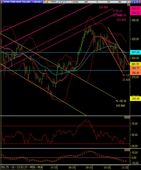 • Bu seviyenin altında yerleştiği takdirde sırasıyla 283.75 ve 279.00 seviyelerini alt destekler olarak takip edebiliriz.