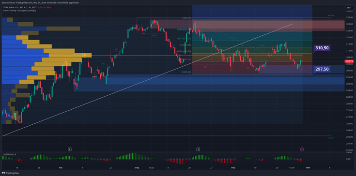 THYAO Türk Hava Yollarının güzide hissesi günlük pivot noktasında Fibonacci olarak 311.333 seviyesindedir. Bu seviye üzeri bir direnç var.