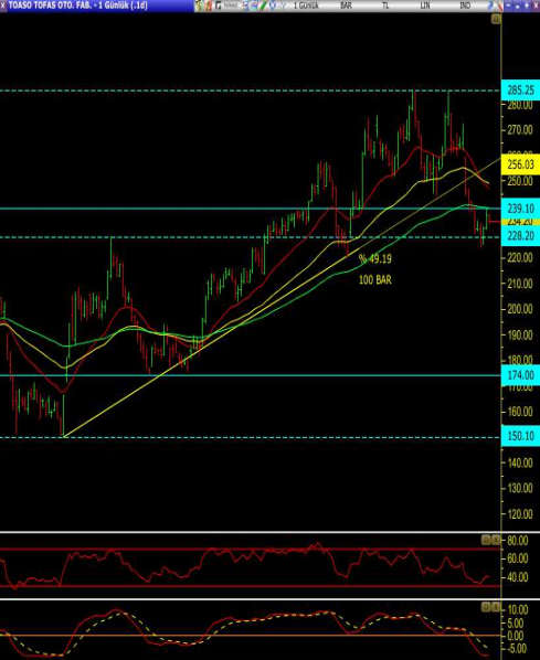 • Genel görünüm olarak ise fiyatın 228,20 desteğinde yön aradığını söyleyebiliriz.