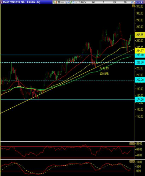 • Hisse uzun süredir yükseliş trendinde. 245.00 seviyesini stoploss olarak takip edebilirken ve bu seviye üzerindeki mevcut pozisyonları da sürdürebiliriz.