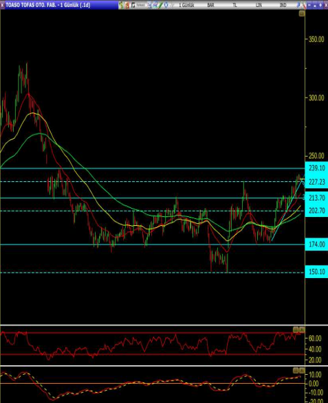• Ancak hisse bu seviye üzerinde tutunarak tepki alır ise 239.10 seviyesi ilk önemli direnç olarak hedeflenebilir.
