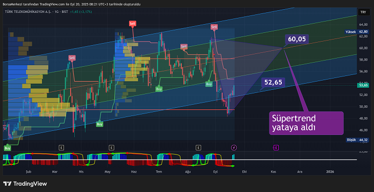 Kısa vadeli teknik seviyelere bakıldığında destekler 52 TL ve 50 TL civarında, dirençler ise 55 TL ve 57 TL seviyelerinde bulunuyor. Bu bant aralığında dalgalanma beklenebilir. Yükselişin devamı için 57 TL üzerinde kalıcı kapanışlar görülmeli, aksi durumda 52 TL altı yeniden satış baskısı yapar. Ne kadar süpertrend al sinyali de verse macd desteklese de 60 TL üstü kalıcı olmuyor.
